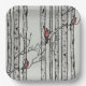 Modern Green Birch Trees and Red Cardinal Birds Paper Plate