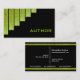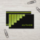 Modern green, black vertical stripes author eye catching business card featuring lime green vertical stripes made of faux green foil with crumbled texture on black background. Note that there is no any real green foil but a flat picture of it.