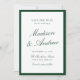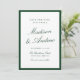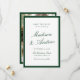 Announce your wedding with this dark green photo save the date card, designed with a rich, classic border and an elegant typographic layout. The couple’s names are featured in flowing calligraphy script, paired with refined serif lettering for the date, venue, and location, creating a formal yet romantic presentation. The back displays your engagement photo framed in coordinating green for a cohesive, editorial look. Perfect for estate weddings, garden venues, black tie celebrations, and traditional ceremonies, this personalized green save the date coordinates beautifully with classic wedding invitation suites and offers a sophisticated way to share your wedding date.