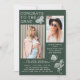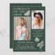 Modern Green White Butterfly Photo Graduation Party Invitations features the simple text "Congrats to the Grad" accented with a flower and butterflies with two of your favourite photos and personalized with name and graduation party details in elegant white script typography. Personalize by editing the text in the text boxes provided and adding your favourite photos. Designed by ©2023 Evco Studio www.zazzle.com/store/evcostudio
