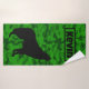 This bathroom towel set features a modern green camo pattern with a bold black wolf silhouette. Each towel is personalized with a monogram, adding a rugged and unique touch to your bathroom decor. Combining both style and functionality, these towels offer a distinctive, masculine flair while providing softness and absorbency for everyday use.