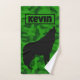 Modern Green Camo Black Wolf Silhouette Monogram | Bath Towel Set