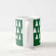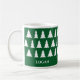 Customizable holiday mug features a bold white tree pattern on a green background above your name on each side. Easily add your name or text in the sidebar. Other style mugs also available in the sidebar.