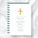 Personalized Modern Green Cross Religious Boy Baptism Invitation