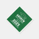 Modern graduation party napkins feature a grad cap with simple and modern white typography design that can be personalized with the graduate's name and school. Green background can be customized to match any school or party theme colour.