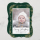 Send customizable and personalized holiday greetings to friends, colleagues and family in simple, minimalist, elegant, fun, festive and modern photo cards! A beautiful frame of variety of gold winter snowflakes on sage green background surrounds your photo on bracket shape paper. The greeting " Merry Christmas " is written in elegant calligraphy, and below features your custom greeting message from your family name in modern typography. Reverse to reveal a beautiful the full gold winter snowflakes on sage green pattern background.