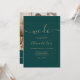 Modern green emerald script photo initials wedding, add 4 of your favourite couple photo , a simple, minimalist and chic wedding invitation, add your initials at the back.