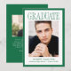 Share your graduate’s achievement with this Modern Green Frame Photo Graduation Announcement, featuring a rich green border that adds a timeless, collegiate-inspired touch to the clean layout. “Graduate” is displayed in refined serif lettering across the top, creating a strong yet sophisticated statement above the graduate’s vertical photo centered on the design. Their name, school, and graduation year are arranged below in a crisp, balanced format that keeps the focus on both the portrait and the milestone. The reverse side showcases a horizontal photo with space for personalized text, making it ideal for including graduation party details, future plans, or a heartfelt thank you message. Designed for both high school and college graduates, this modern photo graduation card offers a polished and distinguished way to commemorate this important accomplishment.