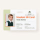 This modern student ID card template features a clean layout with sections for the student's photo, name, date of birth, student ID number, phone number, and address. The front displays the school name and student's photo, while the reverse outlines terms and conditions, usage restrictions, and privacy notices.