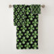 Modern Green Jade Tree Leaves on Black Bath Towel Set