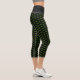 Modern green laurel leaf pattern on black Capri Leggings.