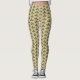 Modern Green Laurel Leaves Pattern on Beige Leggings
