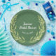 Modern green leaves watercolor illustration on green background with white customizable text is perfect for eco-friendly gifts, nature or island themed showers and parties, or for those who prefer a less formal / glam design.