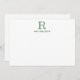 Beautifully simple and understated correspondence note cards with your first name initial in a large, centred light green classic serif font and last name in a complementing dark green sans serif font beneath. The reverse side displays your full name and contact information at the bottom of the card in a chic dark green sans serif font. A perfect note card to have in your stationery collection for business or casual use. Click customize further to change font styles or colours.