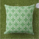 Stylish pillow features a modern decorative Moroccan quatrefoil pattern in white. Customize the green background to coordinate with your outdoor decor.