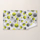 A practical sweat towel with a modern pickleball pattern with lime green and gray pickleballs on a background of black intersecting lines. A perfect gift for a pickelball player.