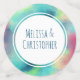 Table confetti for a wedding or other event. Designed with a cool and stylish abstract design. Watercolors mix and mingle to create the illusion of a space image. Green with swirls of purple, yellow and light red blend together with a smattering of white dots and stars. A cool trippy creation. A white circle layered over top with your text inside.