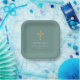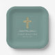 Modern Green Religious Cross Boy Confirmation Paper Plate