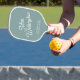Modern Green Pickleball Paddle with the bride’s name in modern script font for a Pickleball wedding.