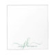 Personalized modern notepad with simple calligraphy style script initials or monogram and name in green. CHANGES: The text font style, colour, size and placement can be changed by clicking on CUSTOMIZE FURTHER under the PERSONALIZE section for a custom look or by contacting the designer via Zazzle Chat or makeitaboutyoustore@gmail.com if you'd like this design modified, on another product or would like coordinating items.