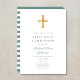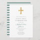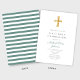 Modern Green Stripes Cross Boy First Communion Invitation.