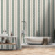 Modern Green Ticking Stripe Linen Texture Wallpaper