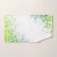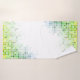 Modern bath towel set done in white with a colourful tones of green and teal tile pattern that gradually fades out. Customize this product to add your own text.