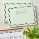 Add a stylish touch to your wedding suite with these Modern Green Wavy Frame personalized wedding envelopes. The front of the light green envelope features a green wavy frame border with "Deliver To" displayed in a handwritten green script. The retro wedding envelope reverses to display your names and return address on the flap in bold green lettering. Designed to coordinate with our Modern Wavy Frame wedding collection.
