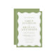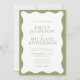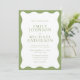 This wedding invitation features a clean white center framed by a soft green wavy border for a fresh, elegant garden-inspired look. The flowing wavy frame adds an organic, modern feel while keeping the layout minimal and refined. The green and white color palette creates a calm, natural style that works beautifully for outdoor and garden weddings.