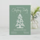 Invite your loved ones to celebrate the holiday season with this modern green Christmas party invitation featuring a minimalist white Christmas tree design with playful polka dot ornaments and falling snow. The stylish typography and clean layout make it a chic and festive choice for your winter gathering.