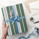 Modern Green White Striped Christmas Holiday Wrapping Paper
