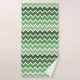 This bath towel features a horizontal zigzag lines pattern in shades of white and green colours, including a custom family initial letter design for personalization.