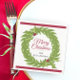 Modern Green Wreath Merry Christmas Personalized Napkin