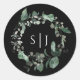 This modern greenery black monogram wedding sticker design features easy mix and match coordinating styles in black and white with delicate greenery elements adding graceful flourish around simple sophisticated typography and lovely minimal calligraphy script. The watercolor eucalyptus and other botanical leaves arch beautifully throughout, with dark emerald fading in an ombre effect to light mint green - to add just enough of a classy touch of rustic nature to a neutral contemporary backdrop. This gorgeous collection would perfectly create an air of polished elegance for your formal or casual dream wedding or other special event. As with all of our designs, if you have any questions or special requests, please reach out.