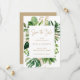 Modern botanical save the date card with your details inside of a geometric frame surrounded by watercolor painted tropical greenery and faux gold leaves. The backside is a matching gold tone. An elegant save the date card that is great for a summer wedding.