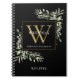 Elegant watercolor greenery leaves monogram name recipe cookbook featuring a gold monogram initial on a black background. Designed by Thisisnotme©