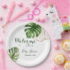 Modern Tropical Greenery Leaf Gender Neutral Baby Shower Paper Plates featuring fresh watercolor tropical leaf, gold foil leaf in green and white colours with pastel greenery background and minimalistic, simple design. Watercolor tropical design is the great way to invite guests to a gender neutral Cute Baby Shower. Matching products avalibple, you can also ask me in massage for a needed item I can creating for you.