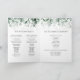 This modern greenery white wedding folded program design features easy mix and match coordinating styles in black and white with delicate greenery elements adding graceful flourish around simple sophisticated typography and lovely minimal calligraphy script. The watercolor eucalyptus and other botanical leaves arch beautifully throughout, with dark emerald fading in an ombre effect to light mint green - to add just enough of a classy touch of rustic nature to a neutral contemporary backdrop. This gorgeous collection would perfectly create an air of polished elegance for your formal or casual dream wedding or other special event. As with all of our designs, if you have any questions or special requests, please reach out.