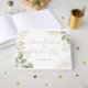 This modern take on an elegant wedding theme is adorned with watercolor greenery and gold details.