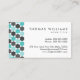 Modern profile or business card featuring a grey and aqua blue hexagon border. Customizable name and title on the front and name, title / company name and contact information on the back. Dark grey text.