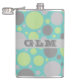 Modern Grey and Green Bubbles Monogram Hip Flask