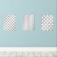 A set of gorgeous geometric light grey abstract designs. This print set pack consists of polka dots, chevron strips and a Moroccan trellis design