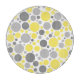 Modern pattern features large and small bubbles of yellow and shades of grey on white background