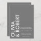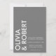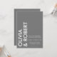 A simple modern wedding invitation featuring bold typography names, grey colour and minimalist design.