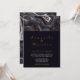 An elegant look for your wedding. On a rich black background this grey and gold agate creates a dramatic look. Personalize with your first names in a gold wedding script font. Below you'll customize with your wedding details.