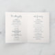 Elegant wedding program featuring a simple and classic design with your names in a modern script and your details in a combination of traditional serif and italic fonts.
