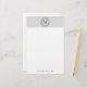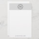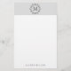 Add style to your stationery collection with beautiful, modern grey monogrammed stationery. The stationery's header features a grey background, decorative frame, and custom monogram. The design's footer features a personalized placeholder that is perfect for your name and contact information.