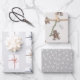A cute assortment of neutral wrapping paper sheets, featuring minimal gifts on a bray background, gingerbread men and snowflakes on a beige grey background, and a white and grey abstract pattern. Contact designer for matching products. Copyright Anastasia Surridge for The Christmas Shop, all rights reserved.