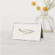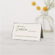 A minimal and modern wedding place card, designed with script lettering and a floral element on the back.