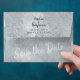 Modern Grey Hearts Script Save the Date and Return Address Wedding envelope. Grey abstract background with a gentle heart pattern. Personalize the envelope with the bride`s and groom`s names and the address and change or erase the Save the date text. Great for your wedding, engagement and save the date mailing.
